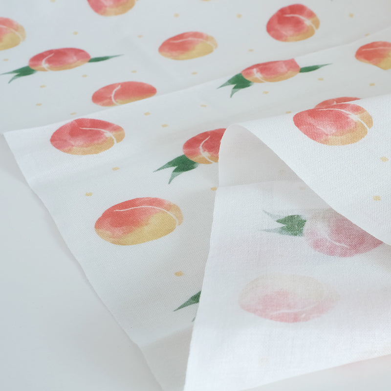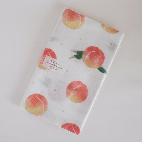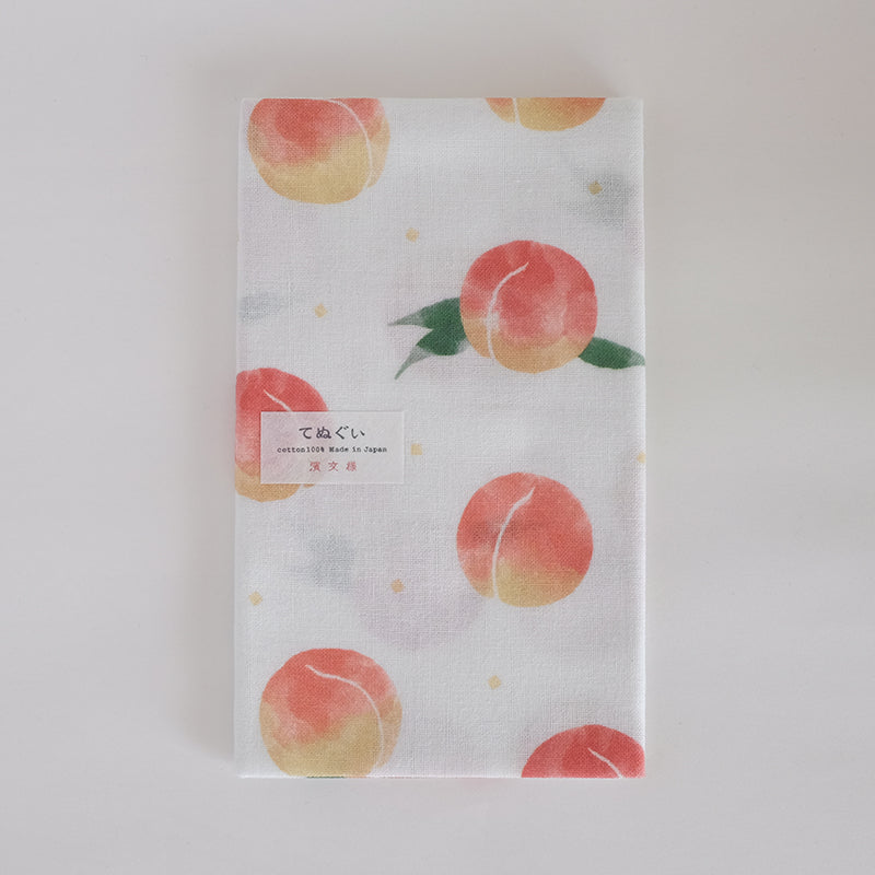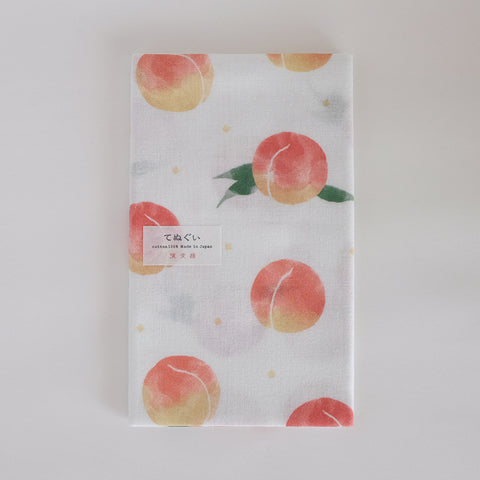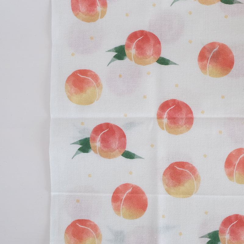じゅわっと甘味がはじけそうな、フレッシュな桃柄てぬぐいです。