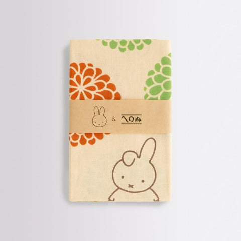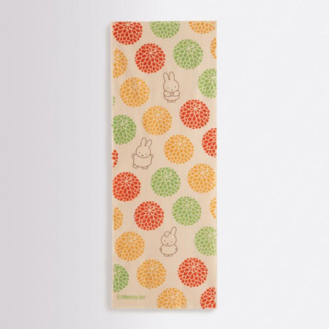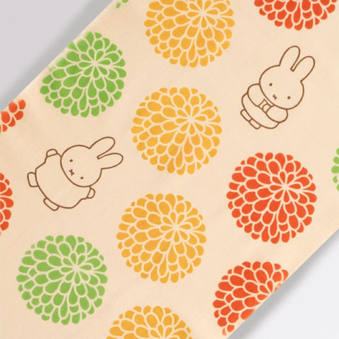 満開の菊のまんまるいお花を楽しむ、ミッフィーたちの愛らしい姿が楽しめるてぬぐいです。