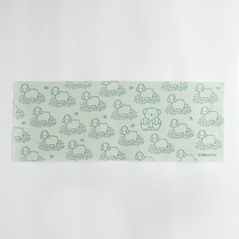 青葉がまぶしい草原でひつじとたわむれるくまのボリス。自然の中で思いきり深呼吸したくなるデザインです。