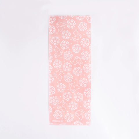 満開の桜の中を駆け回るうさぎたち。お花見に持っていきたくなる温かみのある優しい色合いのてぬぐいです。