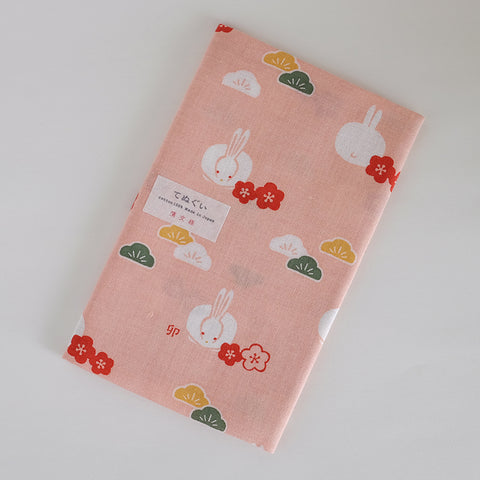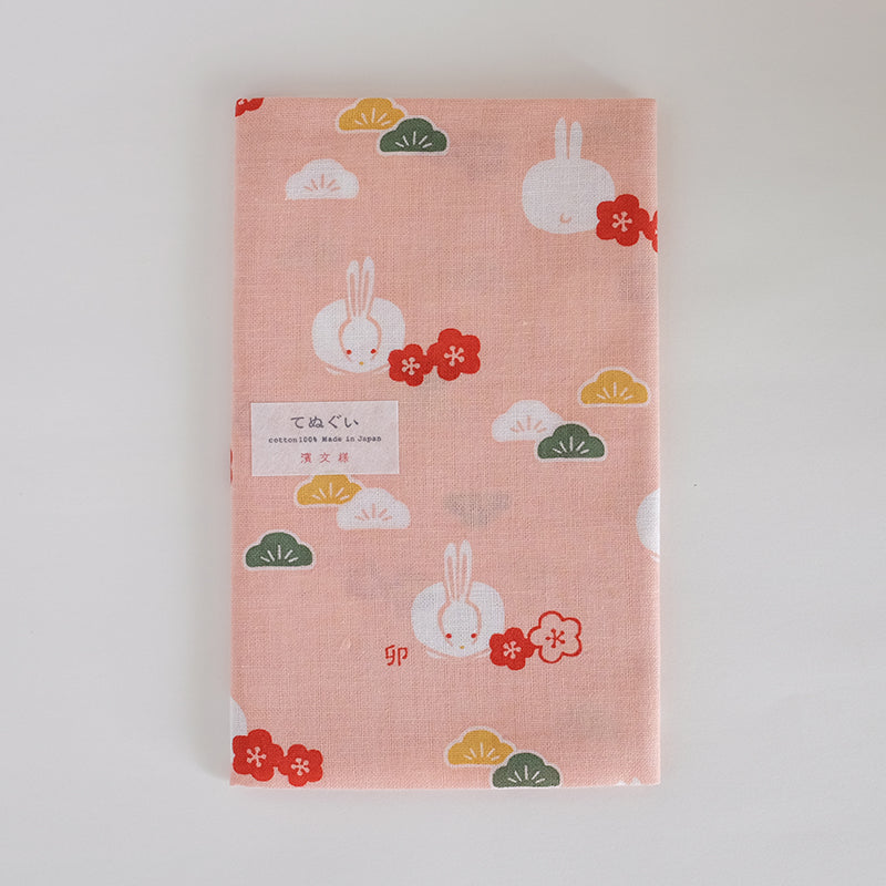 ちょこんと可愛いうさぎに、縁起の良い松と梅をあしらいました。