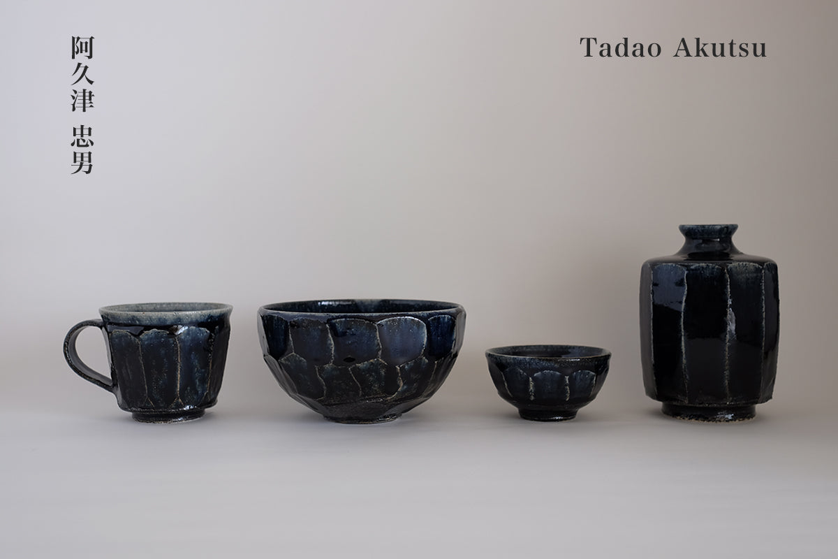 益子の陶芸家 阿久津忠男さんの瑠璃釉の輪花小鉢です