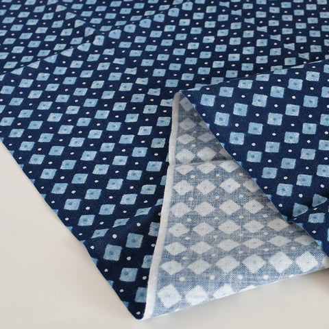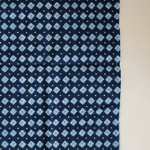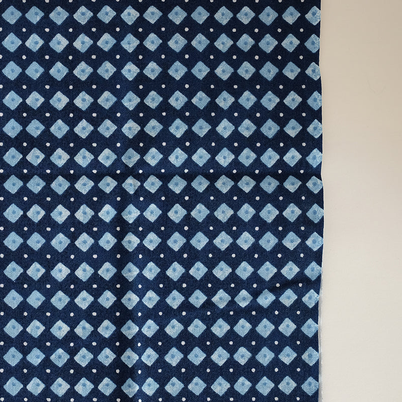 藍から抽出された染料を使い、型を使用して手染めしています。