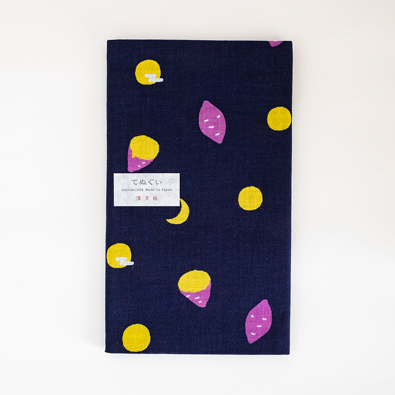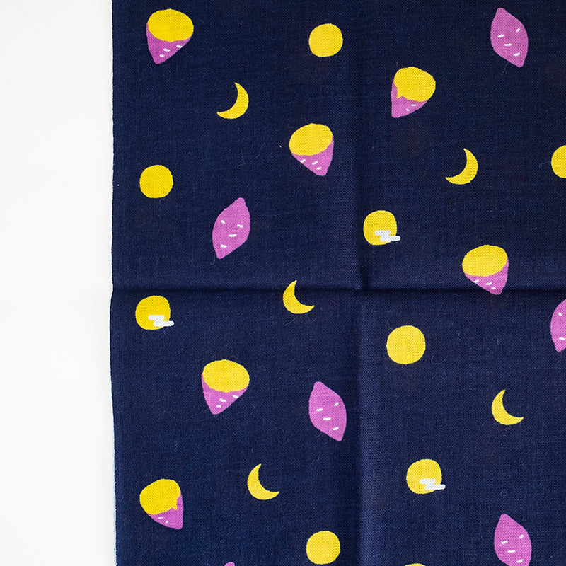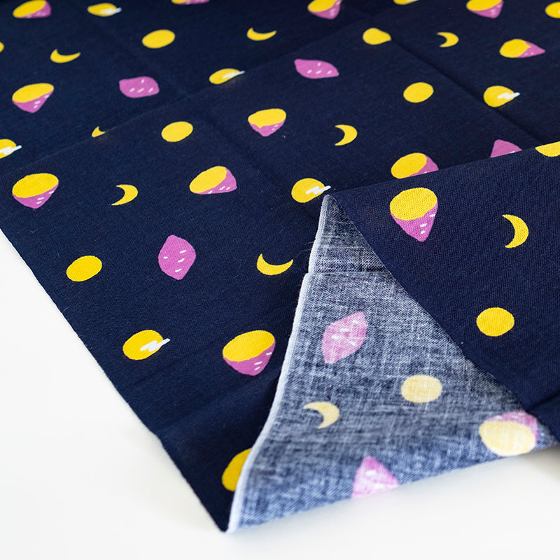 濃紺の地に映える明るい黄色と紅色がキュートです。