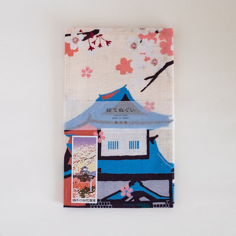 絵てぬぐい 搦手口桜花爛漫 ムラピンク