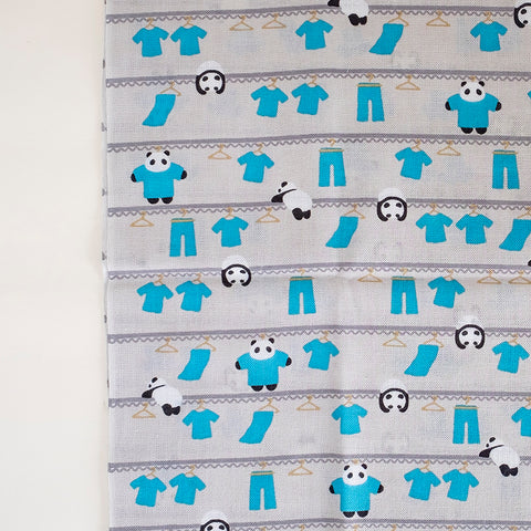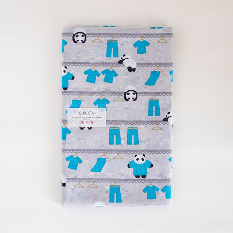 そよそよと風に揺られる洗濯ものに興味津々なパンダたち。