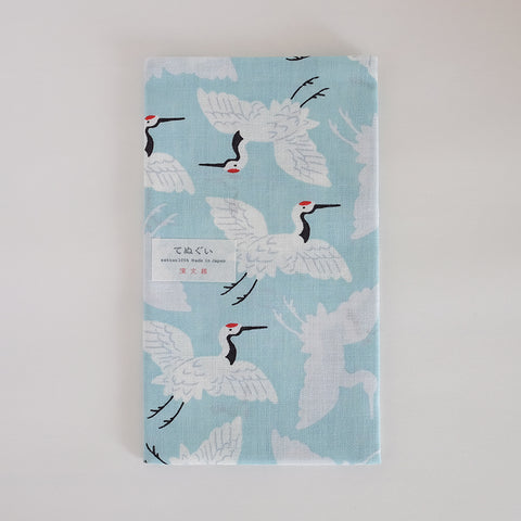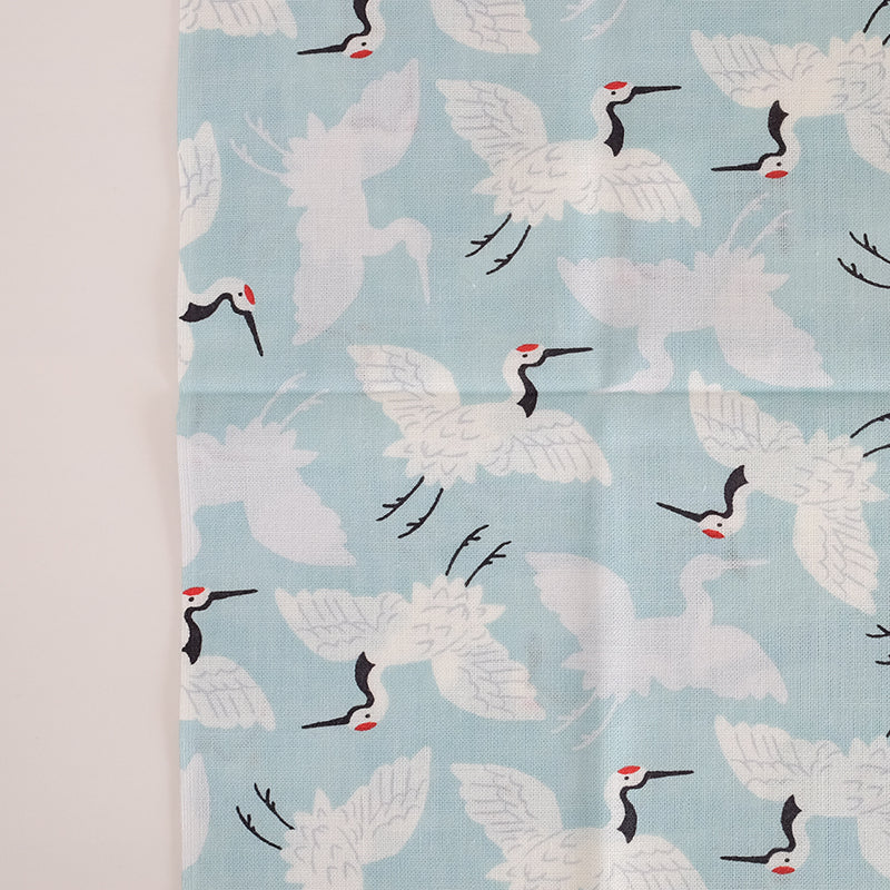 大きく翼を広げた鶴の柄。ゆるい雰囲気が魅力的です。
